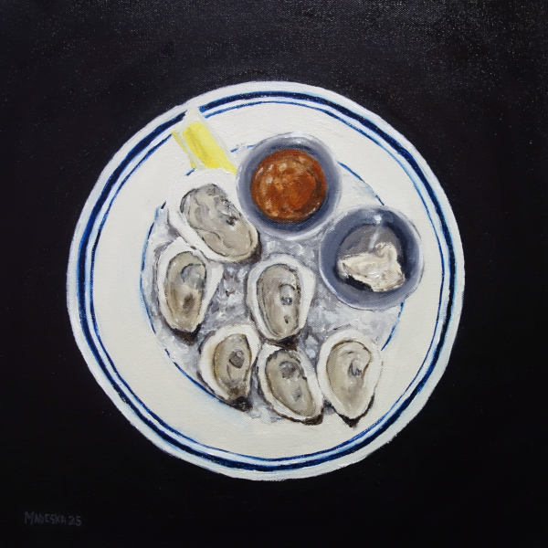 Plate of Oysters, Venteux, Chicago IL, oil on canvas, 20″x20″, 2025